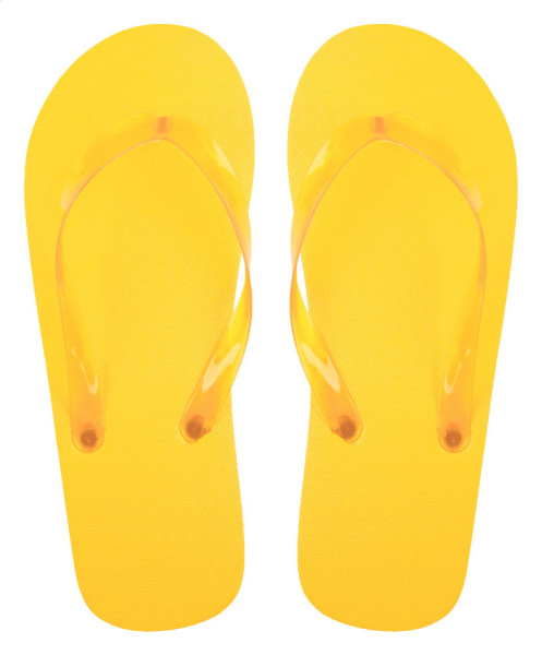 Zehensandalen aus Polyester mit farblich abgestimmten, transparenten PVC-Riemen.
