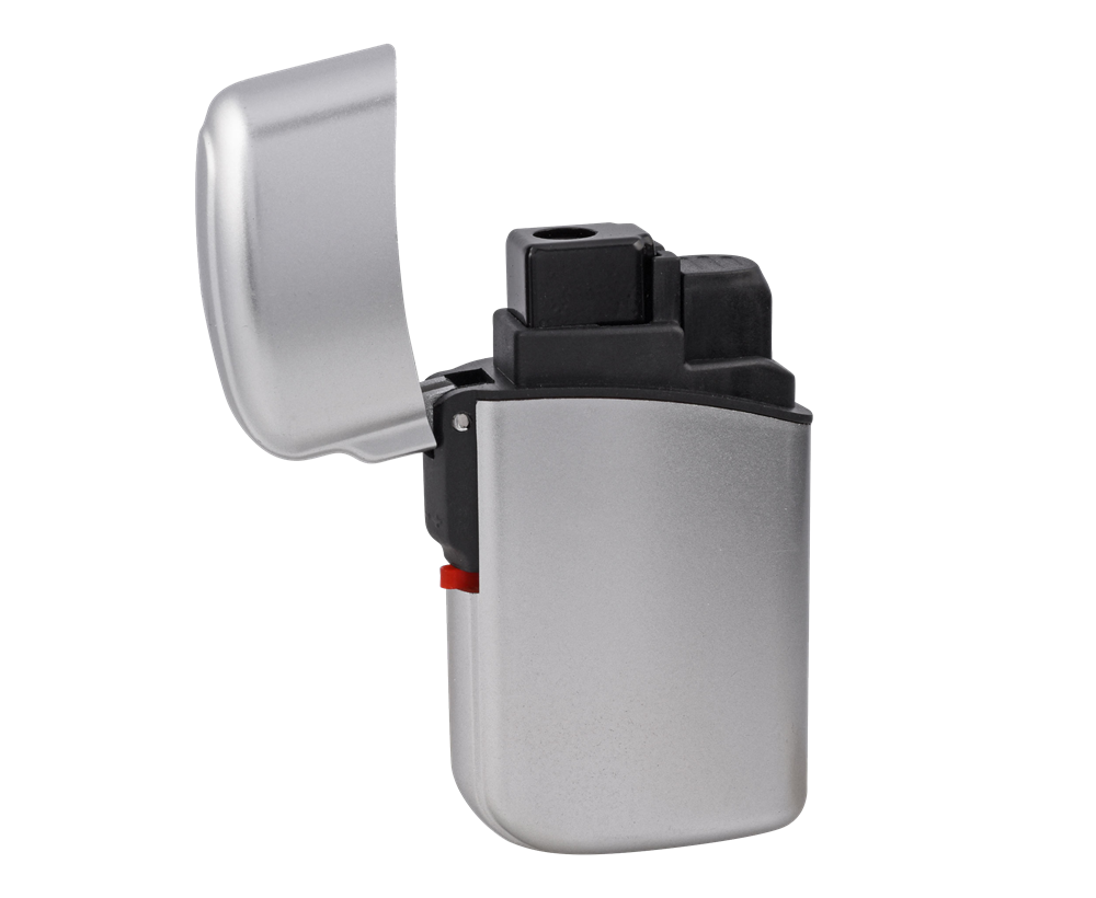 Sturmfeuerzeug „TYSON“ Wind- und wetterfestes Feuerzeug mit Klappverschluss, nachfüllbar und mit großer Werbefläche. (Format: 65 x 35 mm)