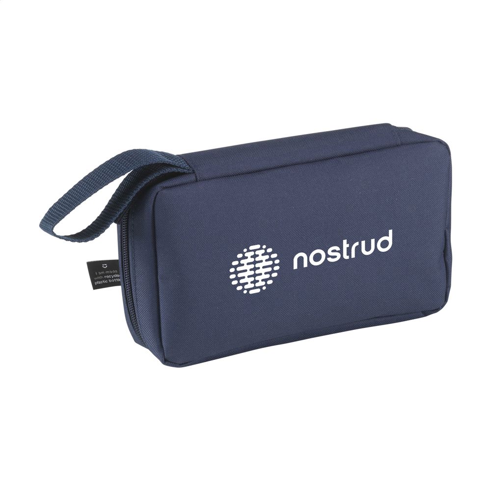 Etui zur geordneten und übersichtlichen Aufbewahrung von Kabeln, Ladegeräten und technischem Zubehör. Hergestellt aus 600D RPET-Polyester. Das Innere bietet reichlich Stauraum, unterteilt in mehrere (Netz-)Fächer. Mit Reißverschluss, einer zusätzlichen Reißverschlusstasche an der Außenseite und einer praktischen Trageschlaufe. Ideal für Reisen, aber auch praktisch für zu Hause oder im Büro. GRS-zertifiziert. Gesamtes recyceltes Material: 88%.