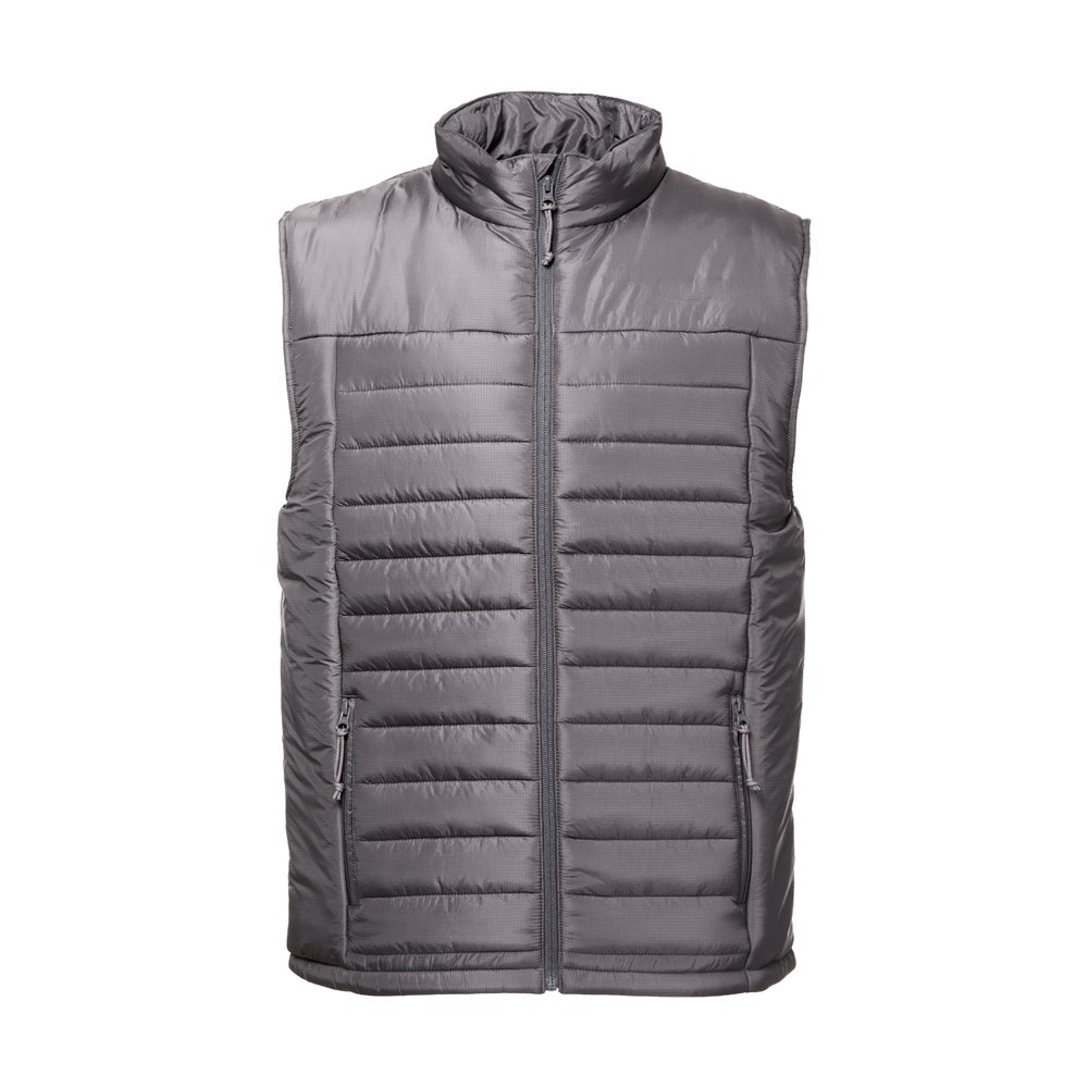 Gepolsterte Weste (Unisex) aus 100% recyceltem Nylon Ripstop (350 g/m²), innen gefüttert mit 100% recyceltem Nylontaft (350 g/m²) für mehr Tragekomfort. Reißverschluss an der Vorderseite aus YKK®- eine Marke, die moderne Ausrüstung mit hoher Qualitätskontrolle verwendet. Es verfügt über zwei Vordertaschen mit Reißverschlüssen und Zugbändern sowie zwei Innentaschen mit selbstklebenden Reißverschlüssen. Auf dem unteren Rücken befindet sich ein Reißverschluss für eine einfache Personalisierung. Größen: XS, S, M, L, XL, XXL, 3XL