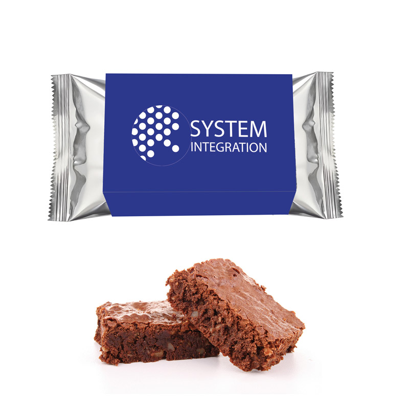 Brownie der Marke Milka original verpackt, im individuell bedruckten Werbeschuber. mehr