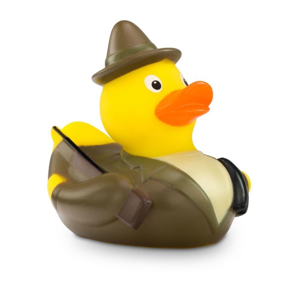 Jens Jäger kommt in klassischer Jägertracht mit grünem Hut und trägt neben einem Gewehr und Fernglas auch das typische Jagdhorn bei sich. Die Badeente eignet sich ideal als witziges Giveaway für Jagdvereine oder Outdoor-Marken. Die Jäger-Badeente bleibt garantiert in Erinnerung und sorgt für ein Schmunzeln bei jedem Bad. Größe: ca. 8 cm. Inklusive Quietschventil