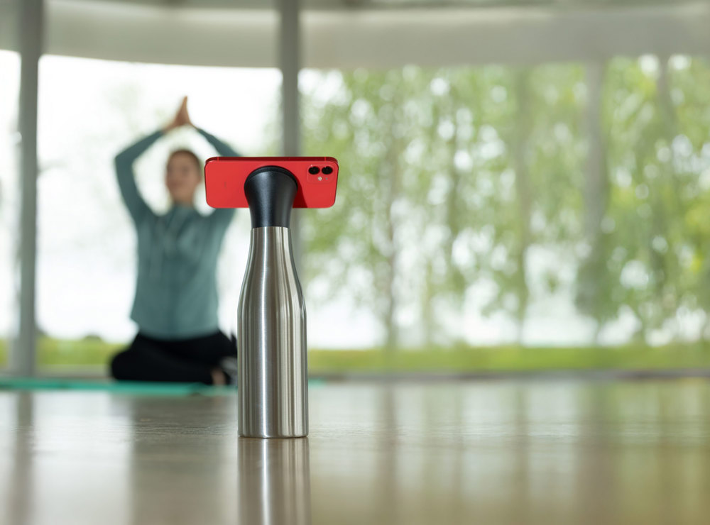 Thermoflasche mit MagSafe Flaschenverschluss, Doppelwand-Isolierung mit Vakuum, 550 ml Fassungsvermögen, lebensmittelecht, mit magnetischem, abgeschrägten Verschluss, der als Handyhalterung dient, zusätzlicher Metallring mit 3M Klebestreifen zum Anbringen an allen gängigen Smartphones, 201 Edelstahl, 304 Edelstahl, Kunststoff, matt, silberfarben