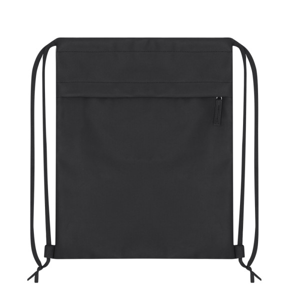 Kordelzug-Rucksack aus weichem PU kombiniert mit robustem 600D-Polyester. Mit funktionaler Fronttasche mit Reißverschluss und farblich passendem PU-Zipper.
