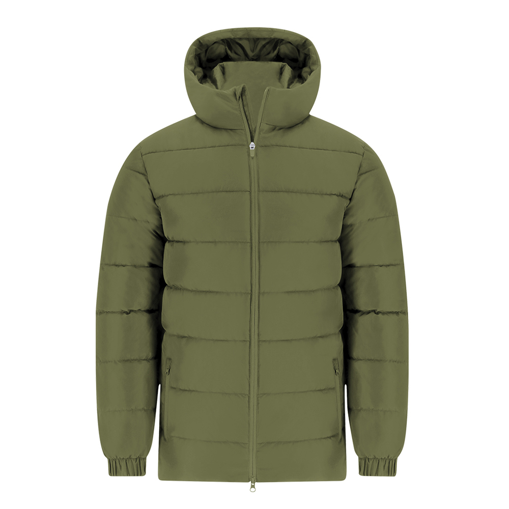 Kinder Unisex-Steppparka mit fester Kapuze und integrierter Krempe. Mit farblich abgestimmtem Frontreißverschluss mit Doppelzipper und Kinnschutz, elastischen Bündchen für bequemen Sitz sowie zwei Seitentaschen mit passendem Reißverschluss. Mit Innenzugang für Branding auf der linken Brust und dem Rücken, ideal zur Personalisierung.