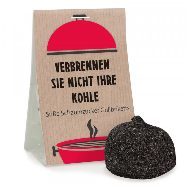 Klein aber fein. Das süße Kohle-Brikett in der praktischen Naschtasche eignet sich perfekt als Werbung für den Finanzbereich. Denn Kohle verbrennen ist hier nicht.