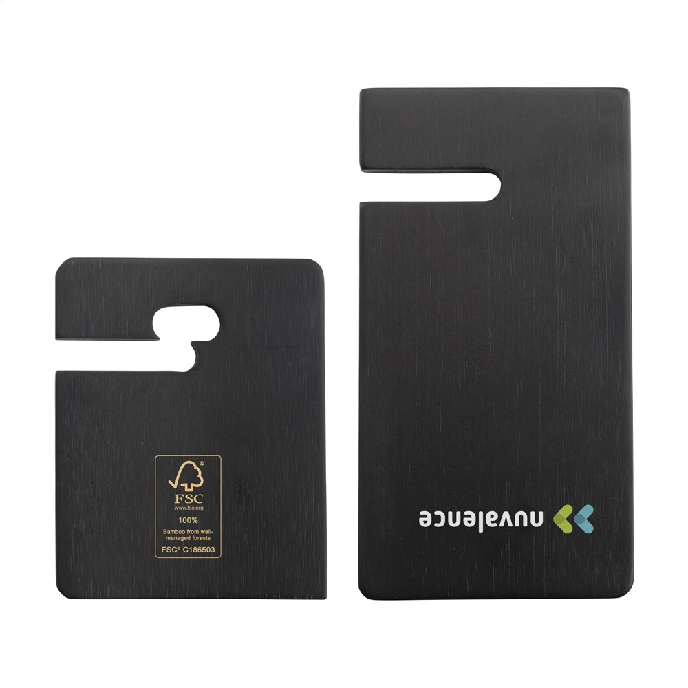 Stabiler Telefonständer aus hochwertigem FSC 100% zertifiziertem Bambus. Der Ständer besteht aus 2 Teilen, die sich mit einer einzigen Handbewegung einfach in- bzw. auseinander schieben lassen. Ideal für den Versand als Briefkastengeschenk. Bambus ist ein Naturmaterial. Deshalb kann die Farbe je nach Produkt unterschiedlich sein. Verpackt pro Stück.