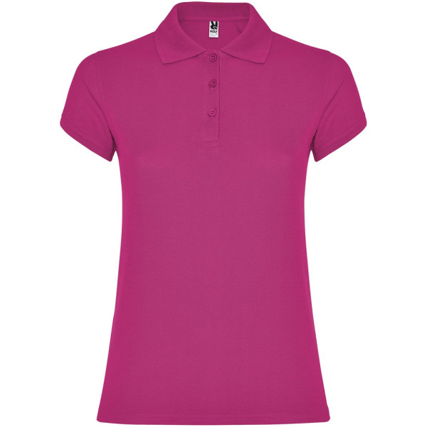 Kurzärmeliges Poloshirt für Damen. Verstärkte und verdeckte Nähte am Innenkragen. 1x1 Rippstrickbündchen an Ärmeln und Kragen. Seitennähte. 3-Knopfleiste und Seitenschlitze. Optionale Tasche. Herausnehmbares Etikett. Das Modell ist 179 cm groß und trägt Größe S.