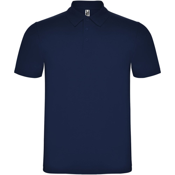 Kurzärmeliges Poloshirt mit 3-Knopfleiste und 1 × 1 geripptem Kragen. Verstärkte und verdeckte Nähte am Kragen. Herausnehmbares Etikett. Das Modell ist 190 cm groß und trägt Größe L.
