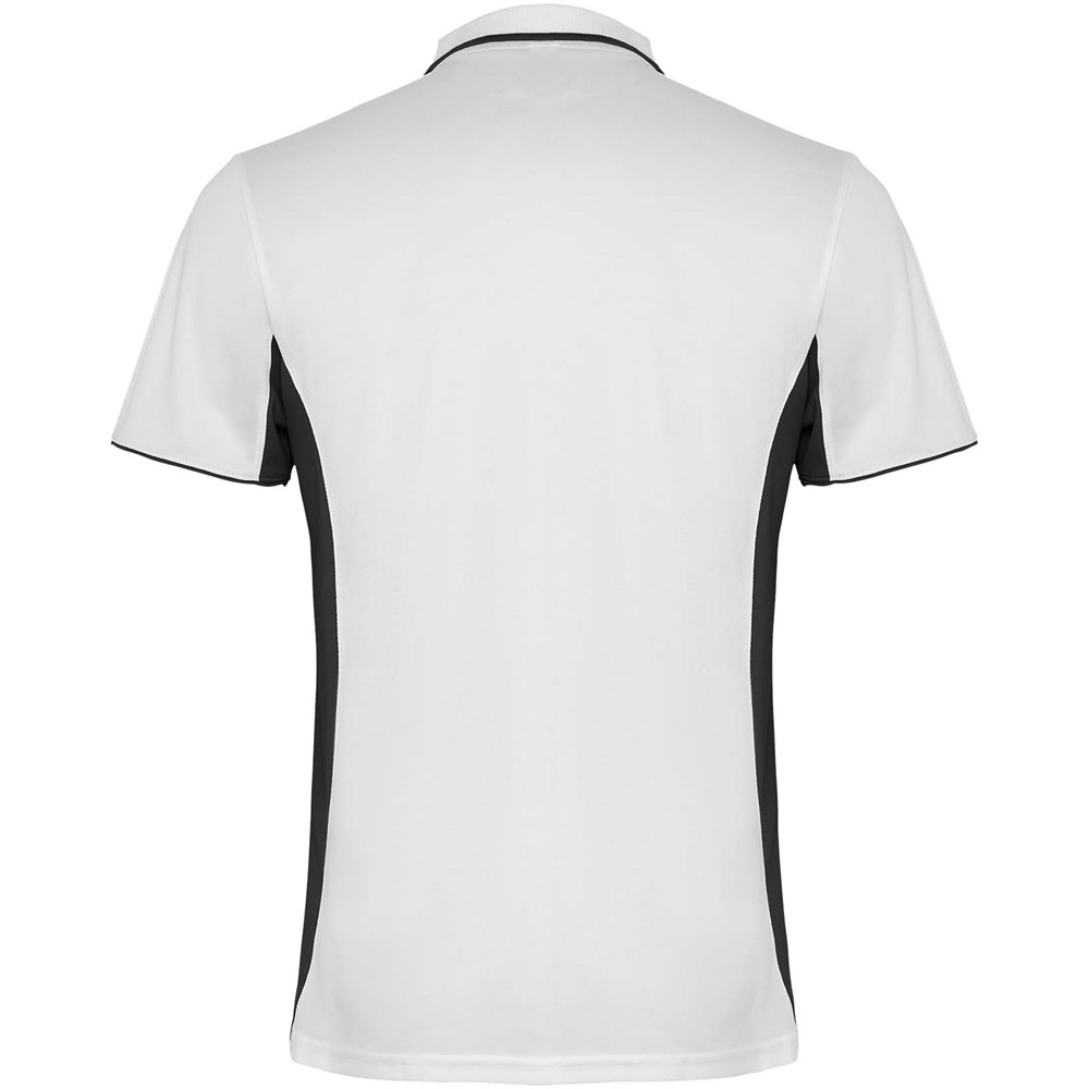Zweifarbige Kombination. Strickkragen mit 3er-Knopfleiste, verdeckten Nähten und Streifen in Kontrastfarbe. Atmungsaktives Funktionsmaterial, leicht zu waschen und zu trocknen. Abnehmbares Etikett.