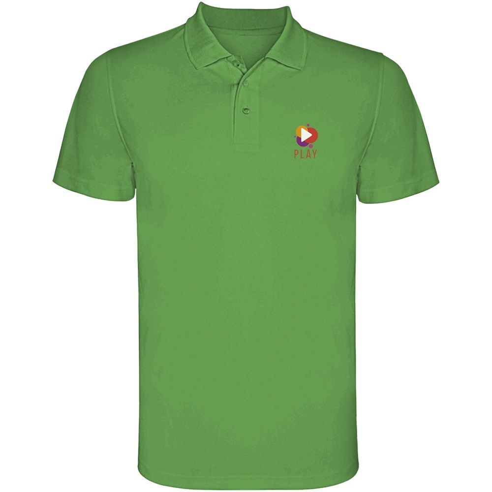 Kurzärmeliges Funktions-Poloshirt. Gestrickter Kragen mit 3-Knopfleiste. Atmungsaktives, leicht zu waschendes und zu trocknendes Material. Herausnehmbares Etikett. Technisches Gewebe. Atmungsaktiver Stoff.