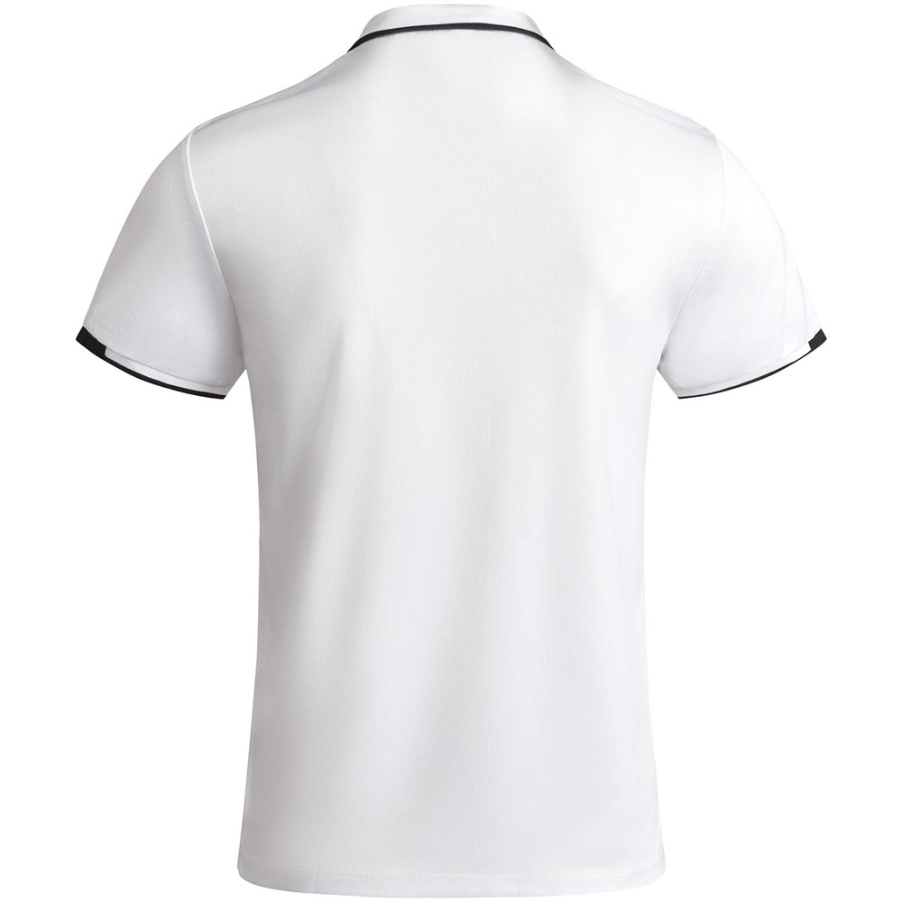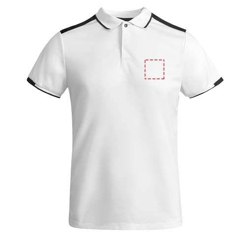 Antibakterieller Stoff aus recyceltem Polyester. 1x1-Rippstrick am Kragen und Details an den Ärmeln. Verstärkte, verdeckte Nähte am Kragen. Knopfleiste mit 2 verdeckten Druckknöpfen. Details und Schulterpartien in Kontrastfarbe. Seitenschlitze am Saum. Abnehmbares Etikett.