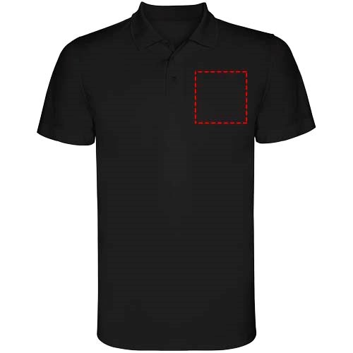 Kurzärmeliges Funktions-Poloshirt. Gestrickter Kragen mit 3-Knopfleiste. Atmungsaktives, leicht zu waschendes und zu trocknendes Material. Herausnehmbares Etikett. Technisches Gewebe. Atmungsaktiver Stoff. Das Modell ist 184 cm groß und trägt Größe L.