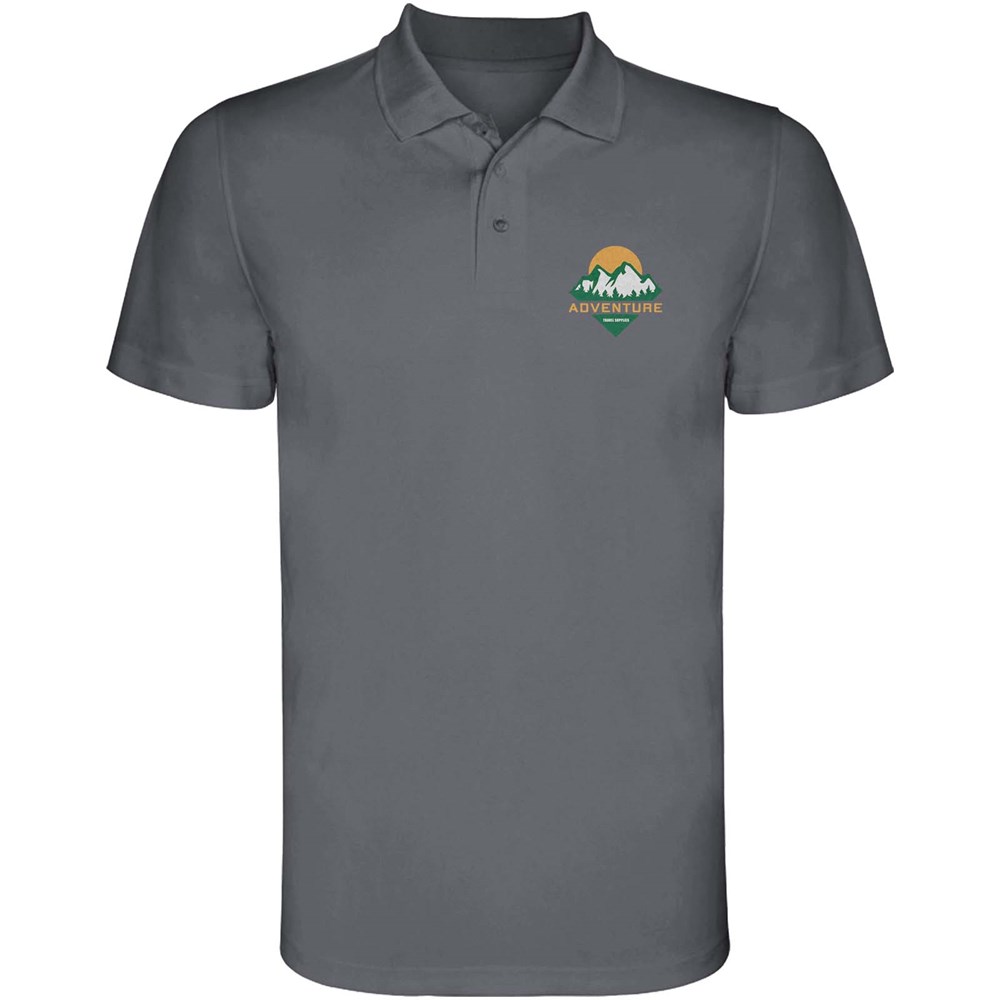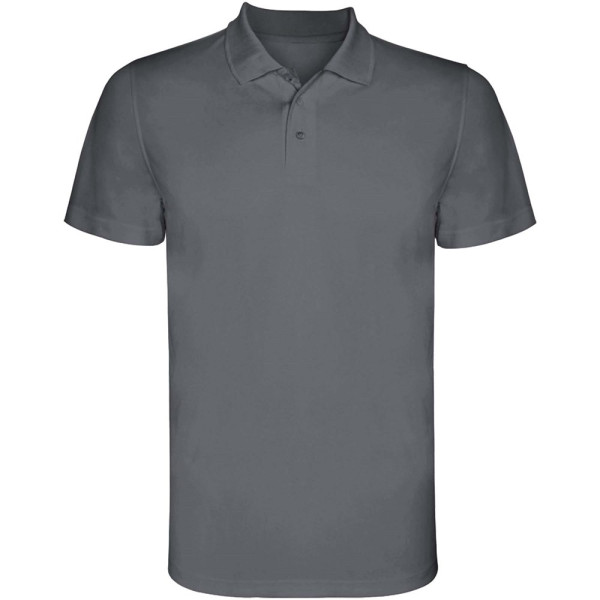 Kurzärmeliges Funktions-Poloshirt. Gestrickter Kragen mit 3-Knopfleiste. Atmungsaktives, leicht zu waschendes und zu trocknendes Material. Herausnehmbares Etikett. Technisches Gewebe. Atmungsaktiver Stoff. Das Modell ist 184 cm groß und trägt Größe L.