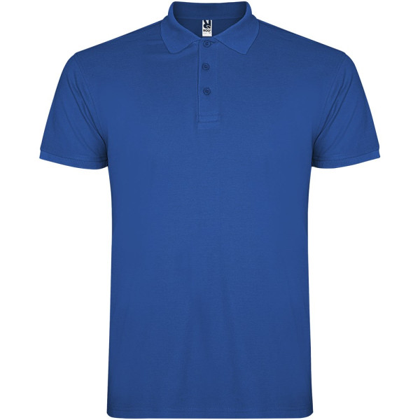 Kurzärmeliges Poloshirt für Kinder. Verstärkte und verdeckte Nähte am Innenkragen. 1x1 Rippstrickbündchen an Ärmeln und Kragen. Seitennähte. 3-Knopfleiste und Seitenschlitze. Optionale Tasche. Herausnehmbares Etikett. Das Modell ist 124 cm groß und trägt Größe 5/6.