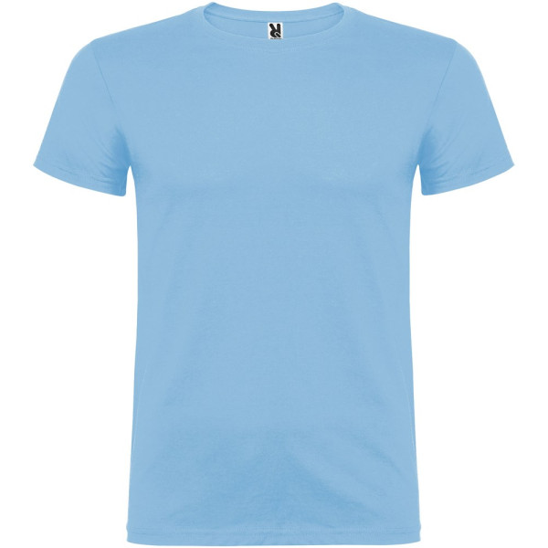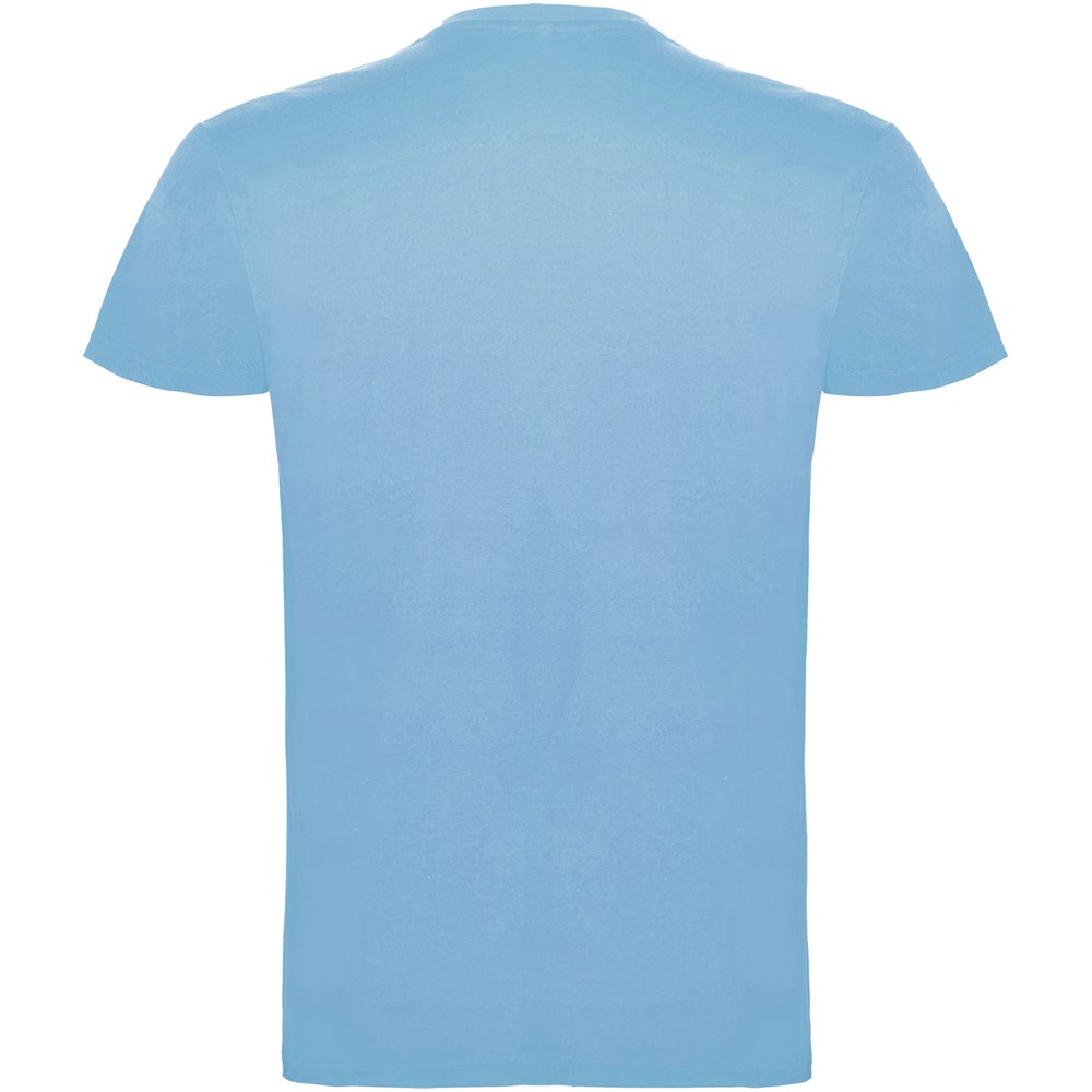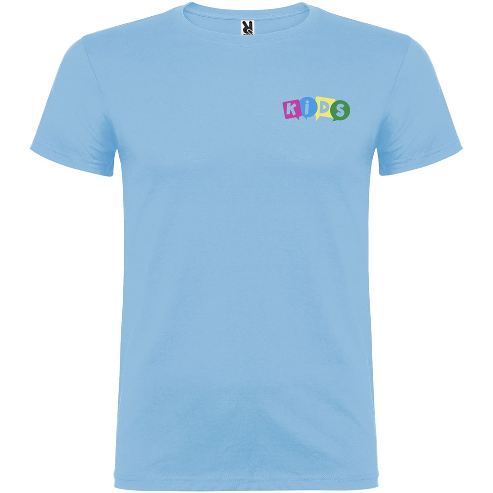 Kurzärmeliges T-Shirt mit doppellagigem Rundhalsausschnitt aus Elasthan, hergestellt aus mit Seitennähten. Verstärkte und verdeckte Nähte am Kragen. Herausnehmbares Etikett. Das Modell ist 120 cm groß und trägt Größe 5/6.