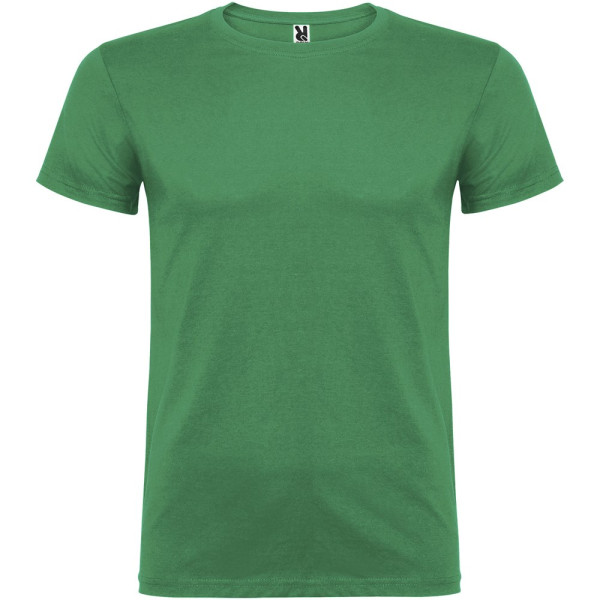 Kurzärmeliges T-Shirt mit doppellagigem Rundhalsausschnitt aus Elasthan, hergestellt aus mit Seitennähten. Verstärkte und verdeckte Nähte am Kragen. Herausnehmbares Etikett. Das Modell ist 120 cm groß und trägt Größe 5/6.