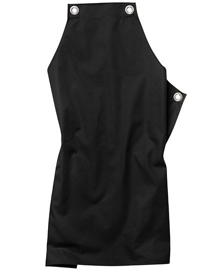 Latzschürze mit vier Ösen | Bänder mit Druckknöpfen auswechselbar (Bänder nicht im Lieferumfang enthalten. Das Bänderset finden Sie unter Artikel CGW42141) | Im Rücken gekreuzte Bänder zur Entlastung des Nackens und stufenlosen Verstellung | Hochveredeltes Mischgewebe | Knitterarm | Strapazierfähig | Bis 95°C waschbar | Industriewäsche- und finishertauglich