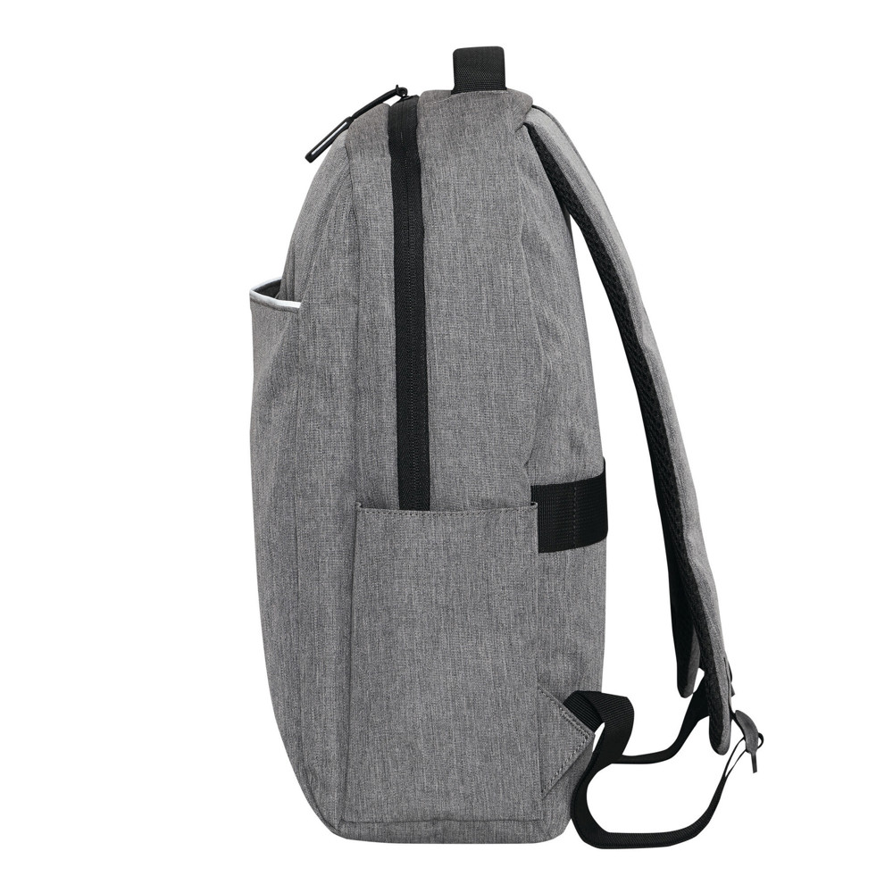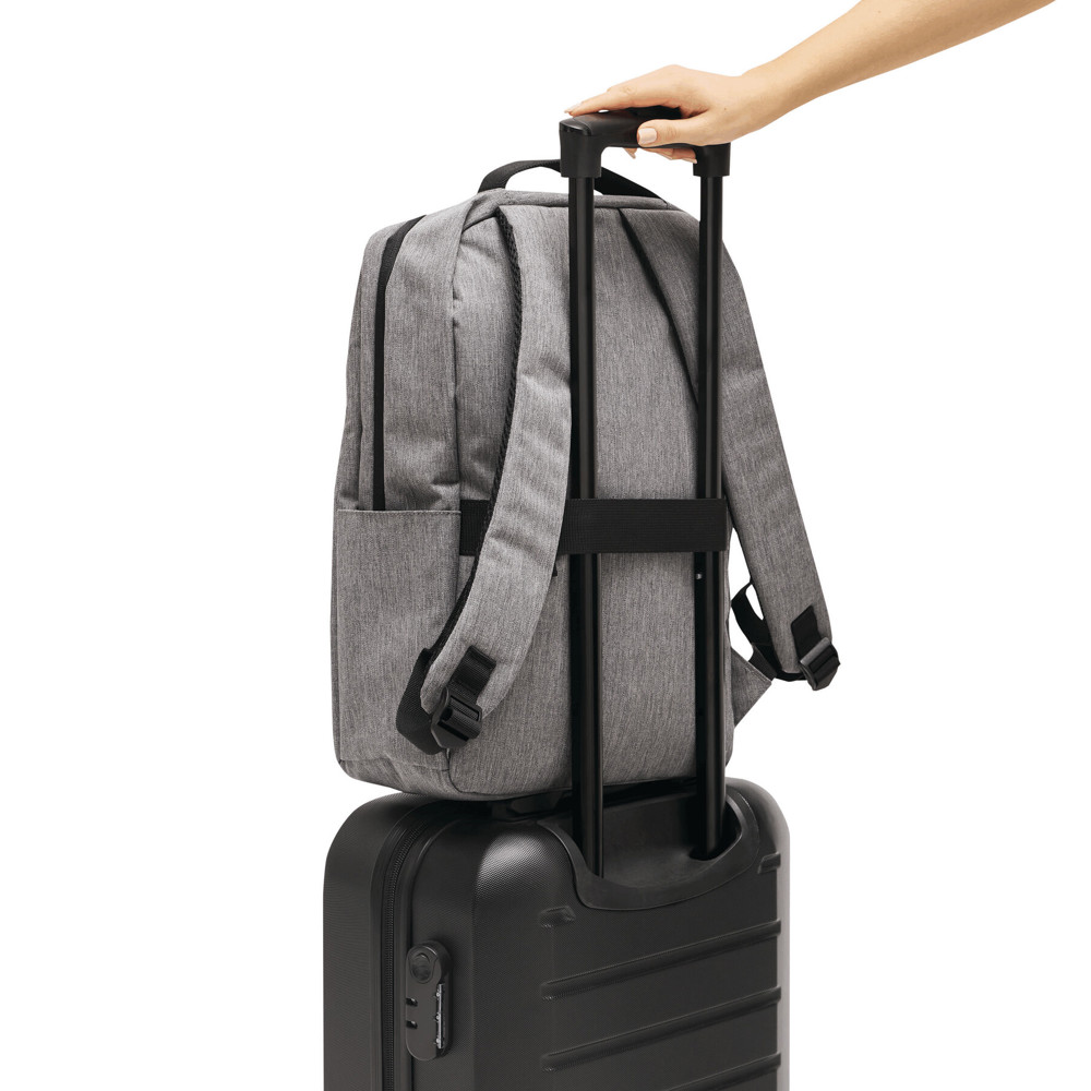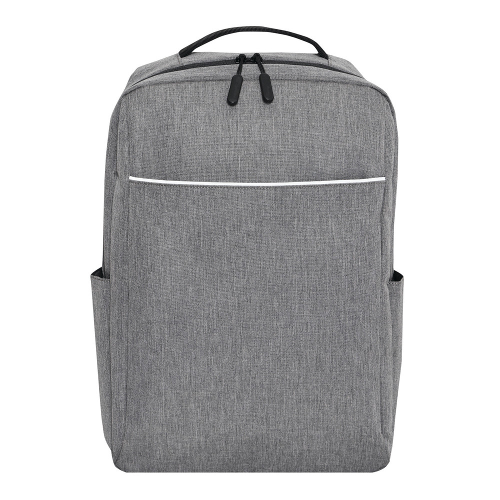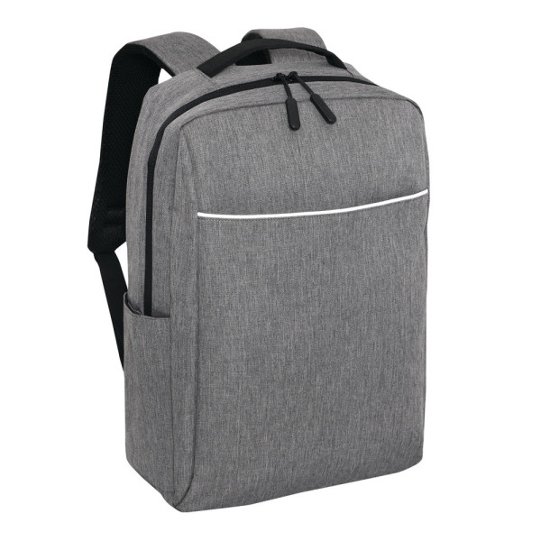 Rucksack GHENT: aus recyceltem Polyester (RPET), 1 Reißverschluss-Vorfach mit Reflektorstreifen, Reißverschluss-Hauptfach mit gepolstertem Innenfach für Laptop oder Tablet, Organizer mit 4 Steckfächern, 2 seitliche Einsteckfächer, gepolsterter Tragegriff, gepolsterte und verstellbare Schultergurte, Gurt als Reporterfunktion auf der Rückseite