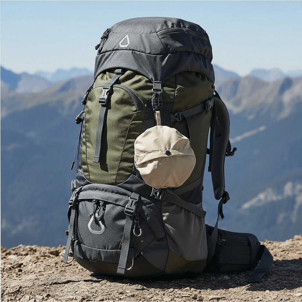 Faltbarer Fischerhut SHADEGO: wasserabweisend, Hut lässt sich mittels Druckknopf zur Tasche umfunktionieren, mit Karabinerhaken (der Karabiner ist NICHT als Sicherung beim Klettern geeignet)