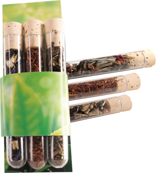 Drei feine Teesorten bilden die aromatische Basis für erfrischenden Eisteegenuss. Kreieren Sie farbenfrohe Mocktails und lassen Sie Ihrer Fantasie freien Lauf. Karte und Banderole setzen Ihre Werbebotschaft stilvoll in Szene – individuell gestaltbar ab 250 Stück.