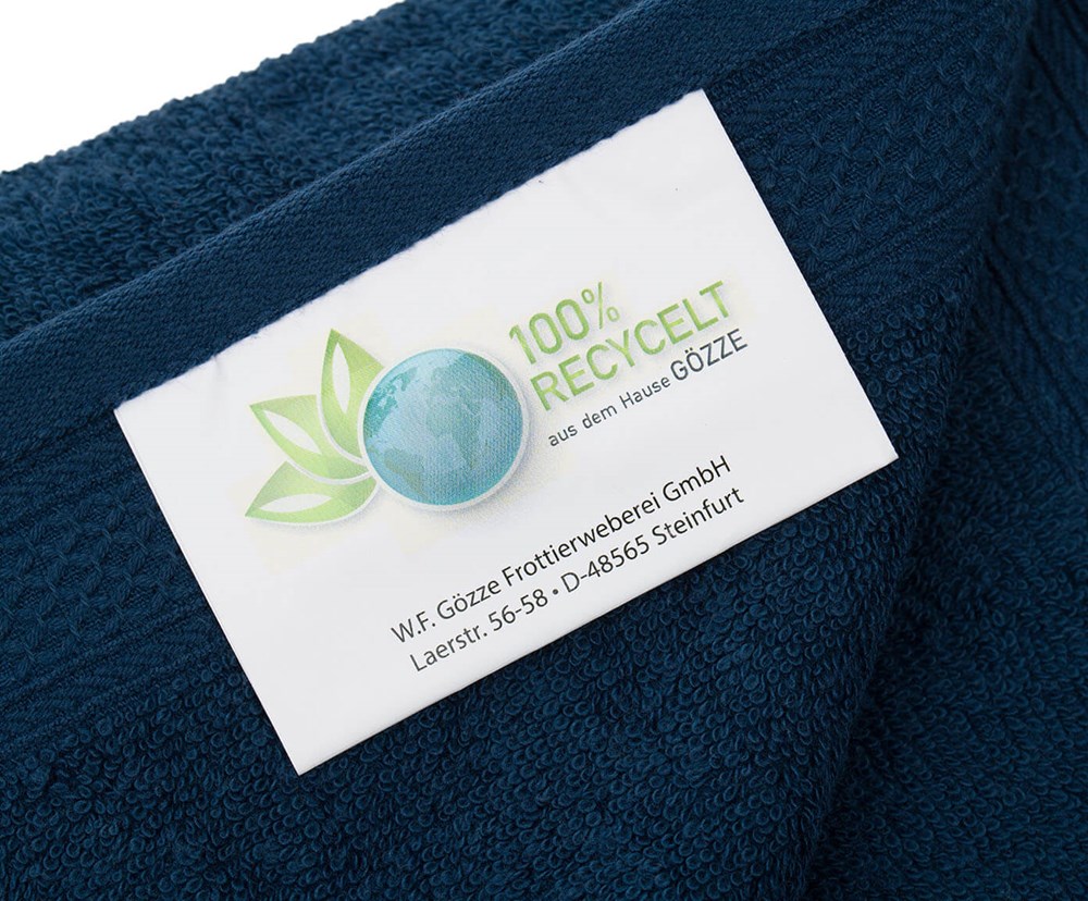 Uni-Frottier Handtücher aus 65% recycelter Baumwolle & 35% recycelten PET Flaschen, ca. 500 g/m²