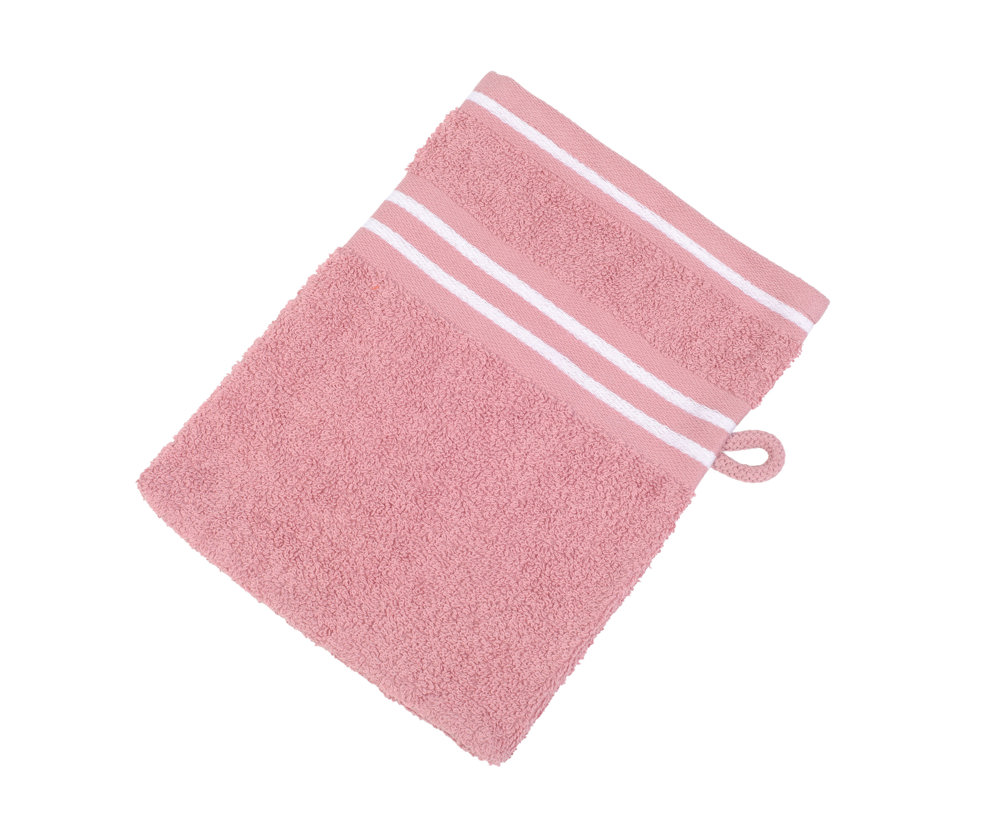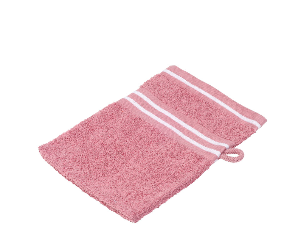FarbigerFrottier-Waschhandschuh aus 100% hochwertiger Baumwolle mit weißer Streifen-Bordüre, ca. 500 g/m²