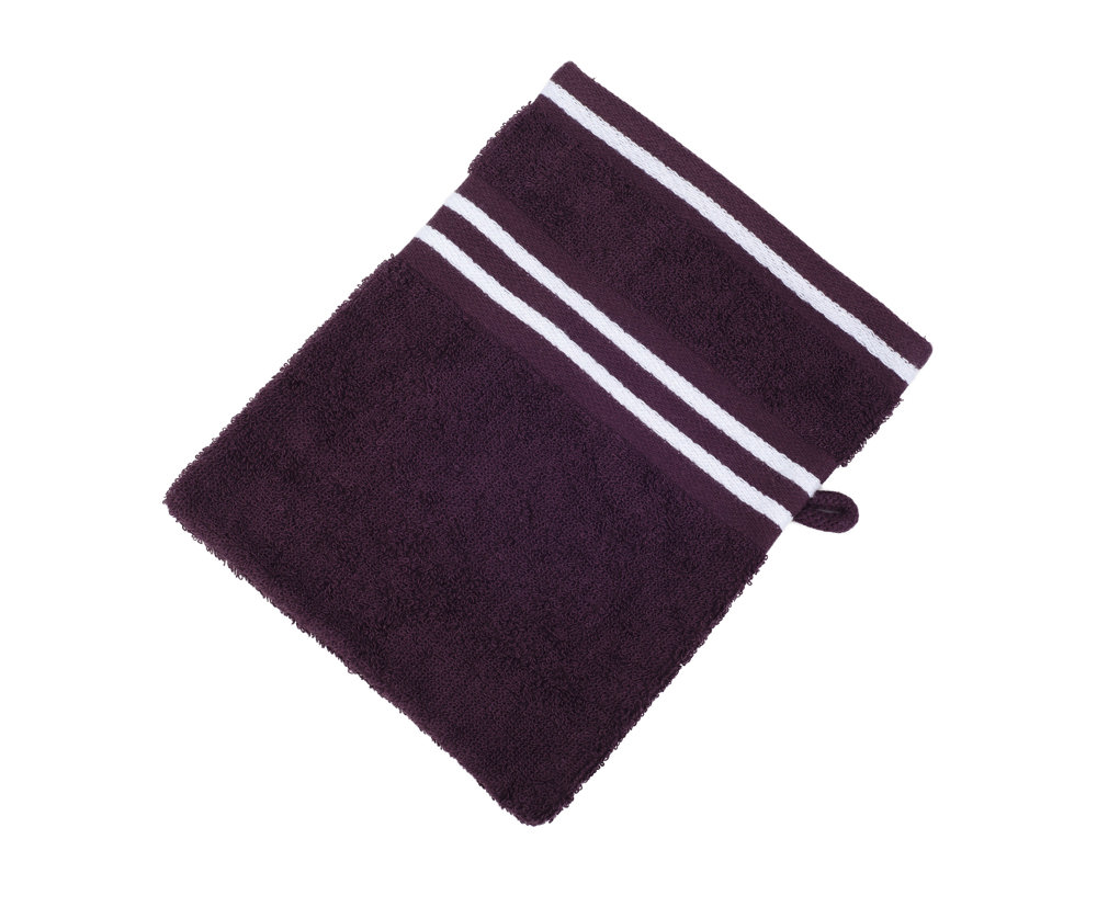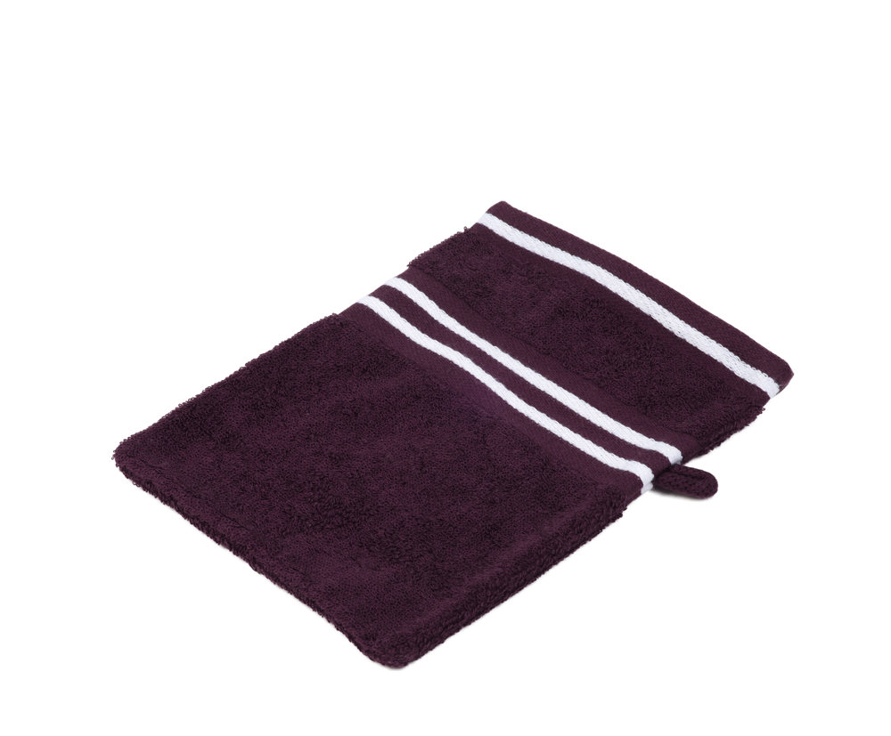 FarbigerFrottier-Waschhandschuh aus 100% hochwertiger Baumwolle mit weißer Streifen-Bordüre, ca. 500 g/m²