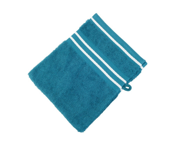 FarbigerFrottier-Waschhandschuh aus 100% hochwertiger Baumwolle mit weißer Streifen-Bordüre, ca. 500 g/m²