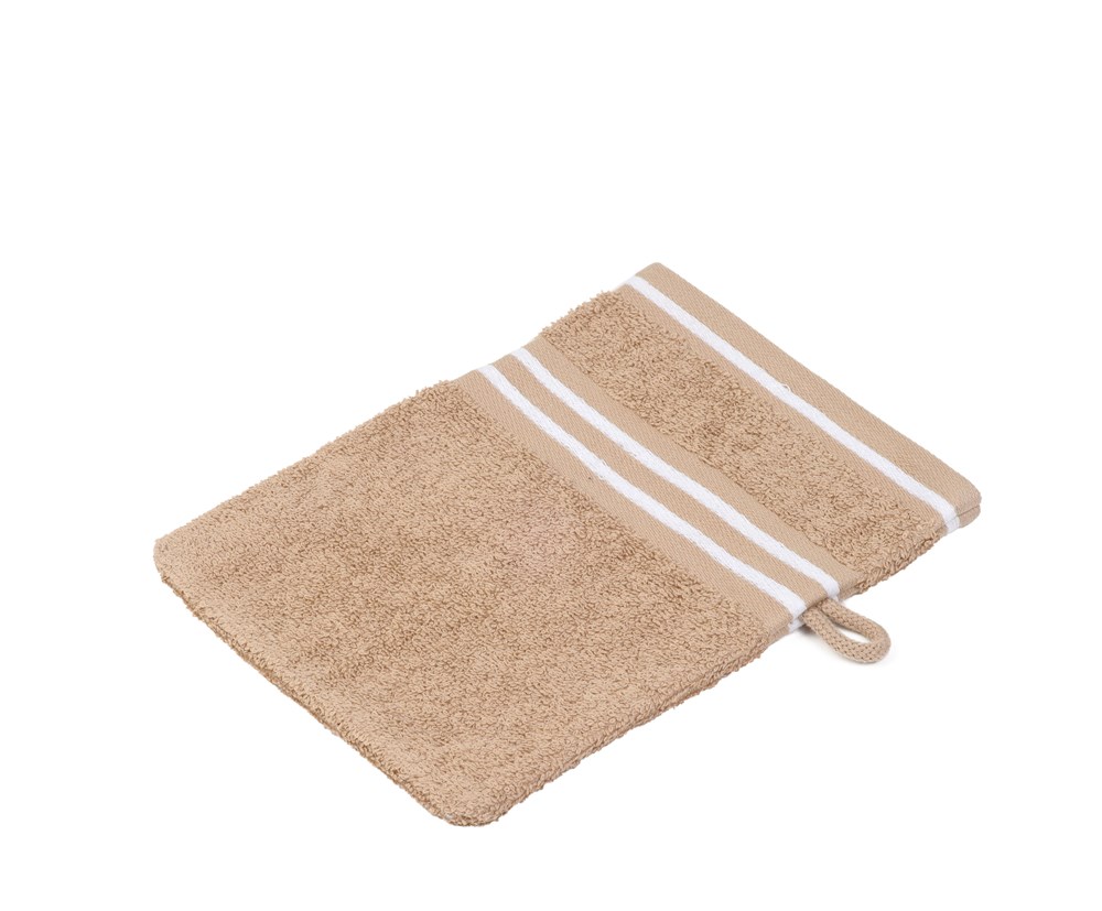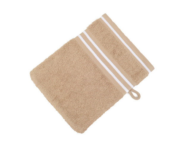 FarbigerFrottier-Waschhandschuh aus 100% hochwertiger Baumwolle mit weißer Streifen-Bordüre, ca. 500 g/m²