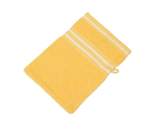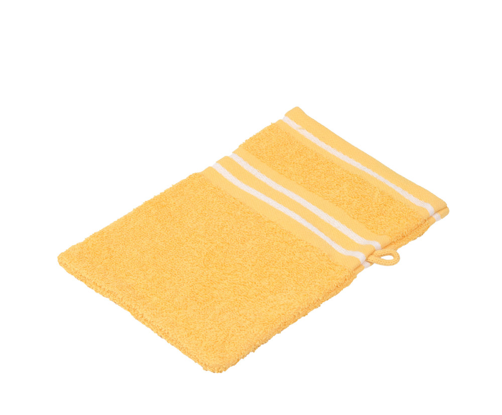 FarbigerFrottier-Waschhandschuh aus 100% hochwertiger Baumwolle mit weißer Streifen-Bordüre, ca. 500 g/m²