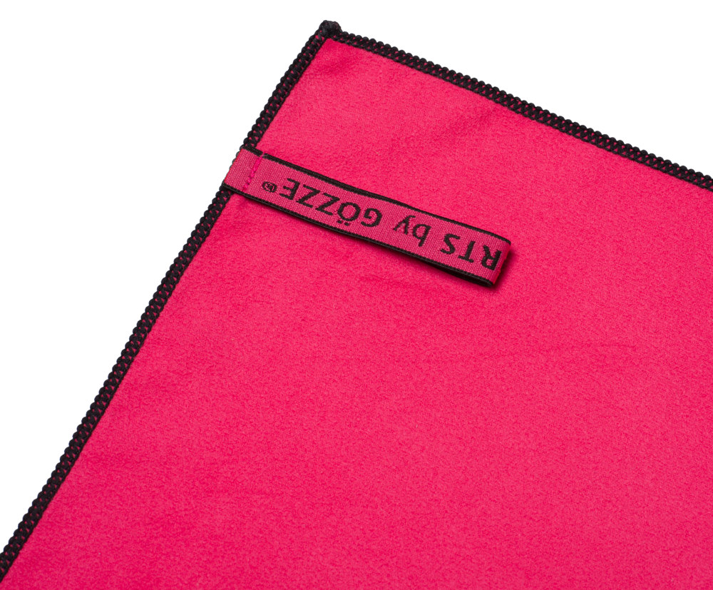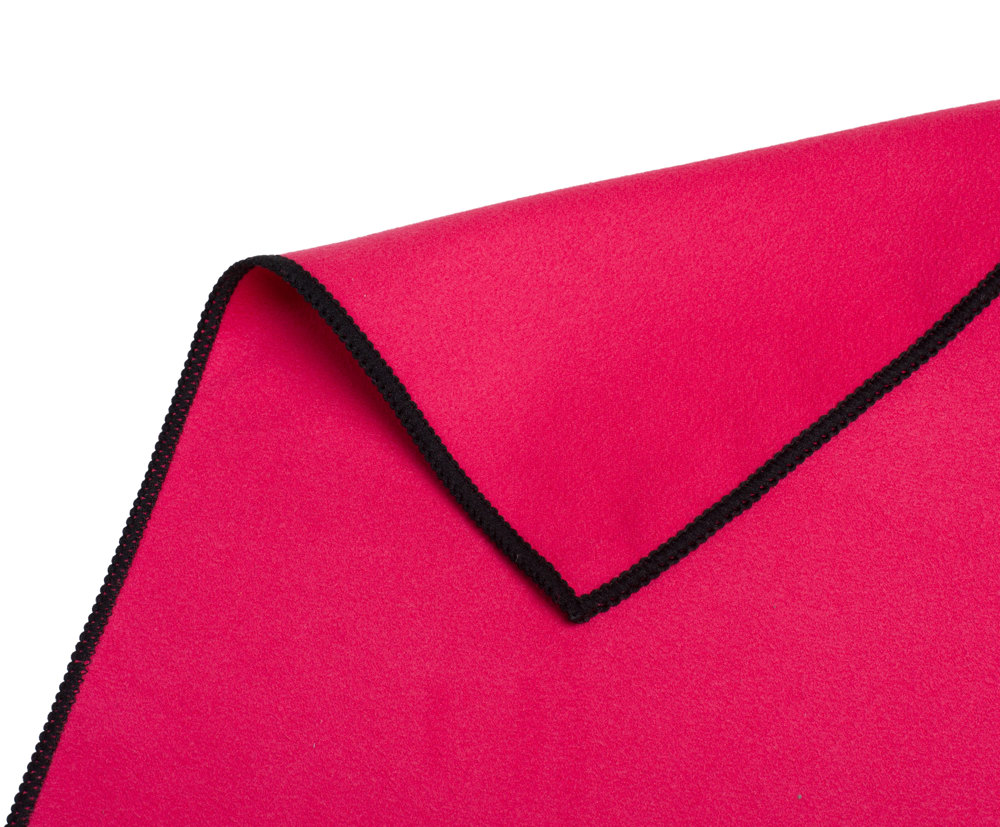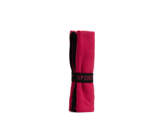 Trendiges und saugfähiges Sporttuch, bestehend aus 90% Polyester und 10% Polyamid, erhältlich mit Reißverschlusstasche und farblich abgepasstem Gummiband als Aufhänger