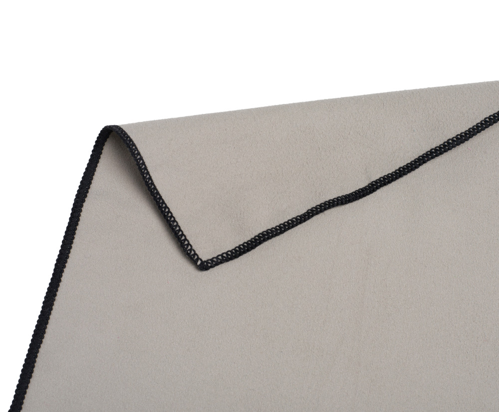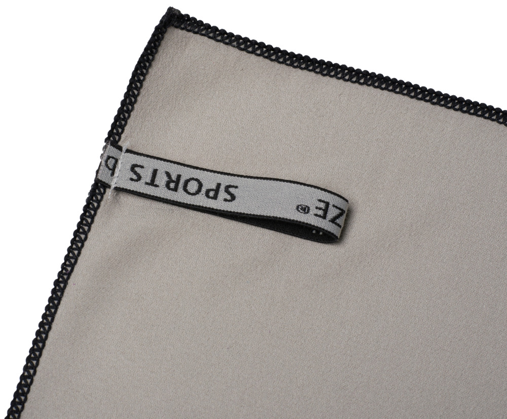 Trendiges und saugfähiges Sporttuch, bestehend aus 90% Polyester und 10% Polyamid, erhältlich mit Reißverschlusstasche und farblich abgepasstem Gummiband als Aufhänger