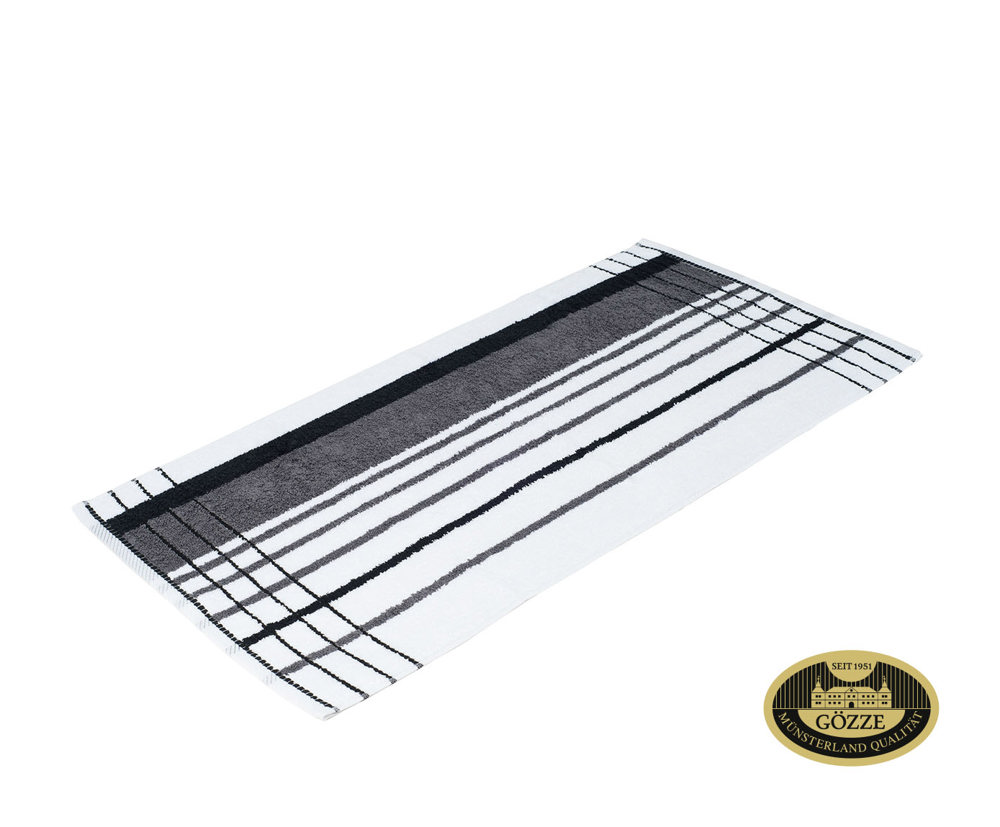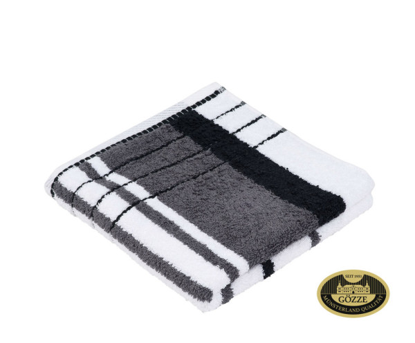 Mutlicolor-Frottier Handtuch aus 100% Baumwolle mit eleganten Schmuckstreifen als Abschluss, ca. 470 g/m²