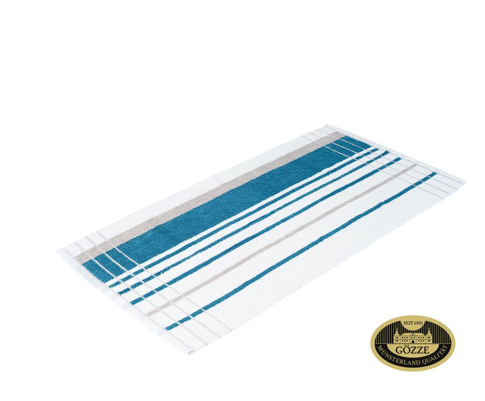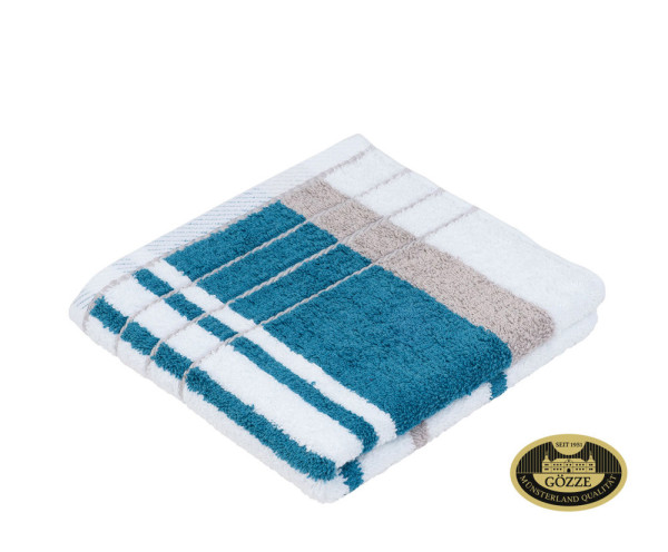 Mutlicolor-Frottier Handtuch aus 100% Baumwolle mit eleganten Schmuckstreifen als Abschluss, ca. 470 g/m²