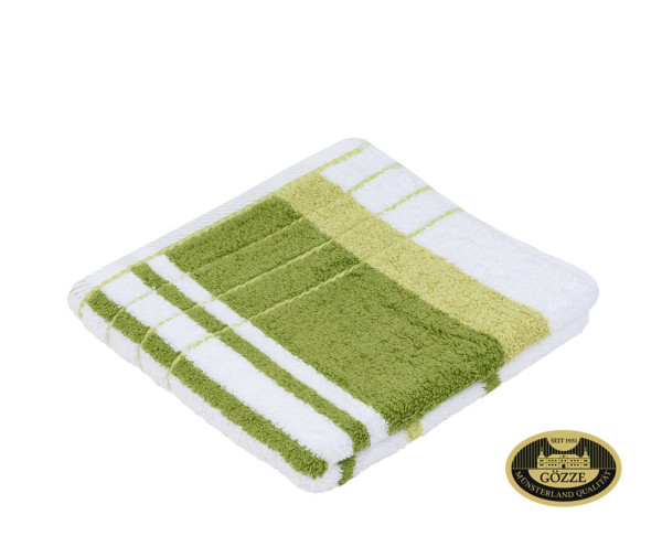 Mutlicolor-Frottier Handtuch aus 100% Baumwolle mit eleganten Schmuckstreifen als Abschluss, ca. 470 g/m²
