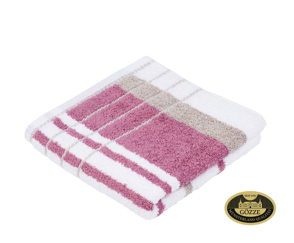 Mutlicolor-Frottier Handtuch aus 100% Baumwolle mit eleganten Schmuckstreifen als Abschluss, ca. 470 g/m²