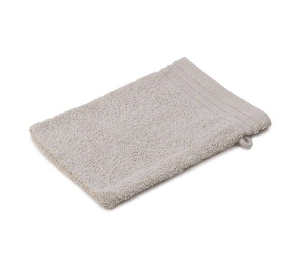 Uni-Walk-Frottier Waschhandschuh mit spannungsfreier 3-Streifen-Tiefgang-Bordüre, 4-seitig gesäumt, bestehend aus 100% hochwertiger Baumwolle, Größe 16x21cm, ca. 400 g/m², Farbe silber