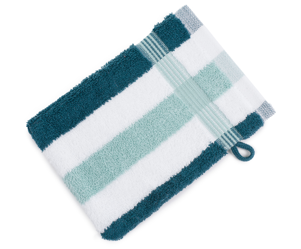 Mehrfarbig gestreiftes Frottier Waschhandschuh mit strukturierter Spannungsfreier Baumwollborte.... mehr