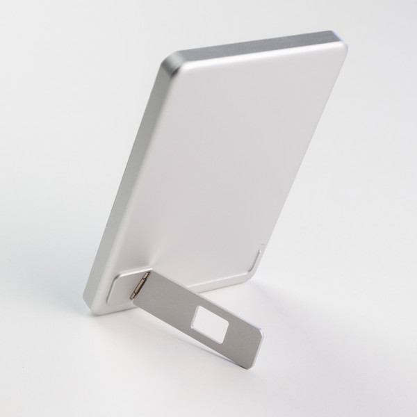 Powerbank Vyro vereint kabelloses Laden mit cleverer Funktion: Dank integriertem Kickstand lässt sich das Smartphone beim Laden aufstellen – ideal für Video-Calls, Streaming oder Desk-Use. Das hochwertige Aluminiumgehäuse ist flach, leicht und in vier Farben erhältlich: Silber, Blau, Orange und Schwarz. Die Powerbank ist MagSafe-kompatibel, unterstützt kabelloses und kabelgebundenes Laden und wird inklusive USB-C-Ladekabel geliefert. Verpackt im grünen Kraftkarton. CE- und RoHS-zertifiziert.