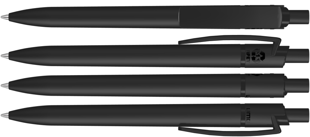 Druckkugelschreiber aus recyceltem PET-Material mit matt gedecktem Gehäuse, Clip und Drücker.