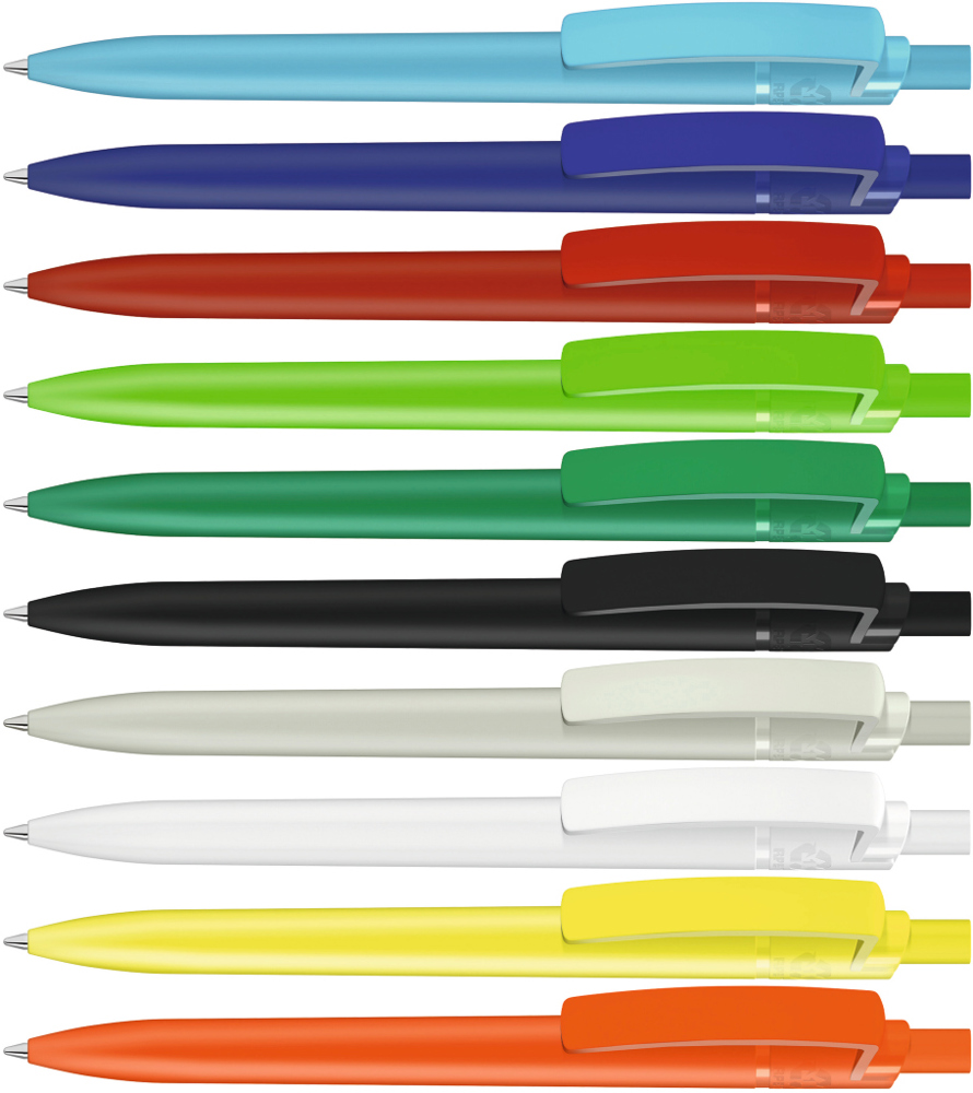 Druckkugelschreiber aus recyceltem PET-Material mit matt gedecktem Gehäuse, Clip und Drücker.