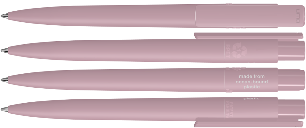 Druckkugelschreiber aus recyceltem PET-Material aus Ocean Bound Plastic mit matt gedecktem Gehäuse und Clip. Das durch Plastic Bank gesammelte Ocean Bound Plastic, auch bekannt als Social Plastic®, wird in Europa zu einem recycelten PET Schreibgerät für einen langlebigen und nachhaltigen Werbeeinsatz upgecycelt.
