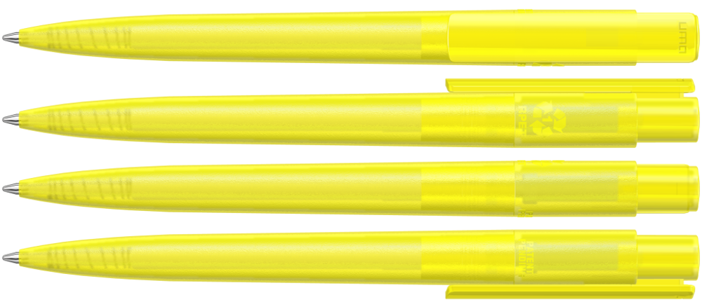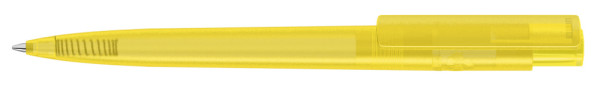Druckkugelschreiber aus recyceltem PET-Material mit transparent gefrostetem Gehäuse und Clip.