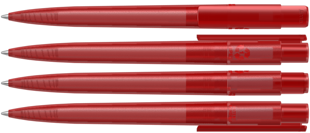 Druckkugelschreiber aus recyceltem PET-Material mit transparent gefrostetem Gehäuse und Clip.