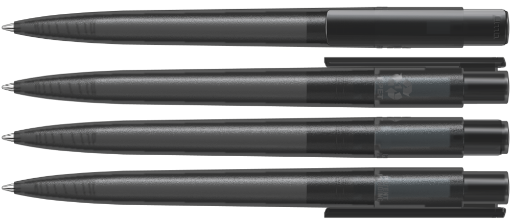 Druckkugelschreiber aus recyceltem PET-Material mit transparent gefrostetem Gehäuse und Clip.