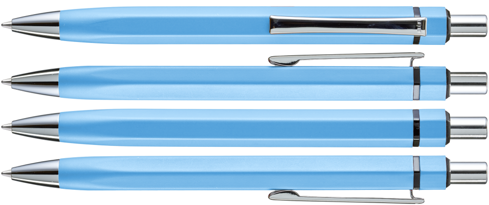 Metall-Druckkugelschreiber mit matt lackiertem, sechskantigem Aluminiumschaft. Metallclip,... mehr