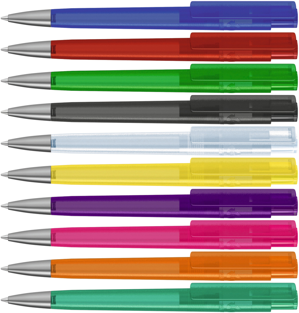 Druckkugelschreiber aus recyceltem PET-Material mit transparent gefrostetem Gehäuse und Clip... mehr