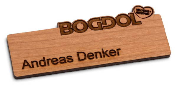 Das individuelle Holz-Namensschild Lignum | Exklusiv ist perfekt für einen „natürlichen“ Eindruck, mit einer herausragenden Kontur und durch die stets individuelle Maserung des Naturmaterials wird es zu einem markanten Blickfang. Das Namensschild Lignum wird individuell mit Logo und Namen lasergraviert. Material: Kirsche, weitere Holzarten (Ahorn, Bambus, Birke, Walnuss) sind erhältlich. Das Holz-Namensschild ist mit einer kleiderschonenden Magnet-Befestigung ausgestattet und sofort einsatzbereit. Format: individuell. Befestigungsalternativen sind verfügbar.