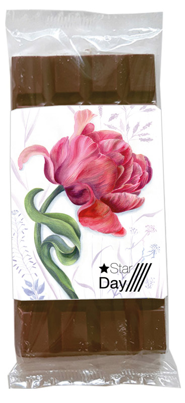 100 g Schokoladentafel in Confiserie-Qualität einzeln in Klarsichtfolie verpackt mit einer 4-fbg.... mehr